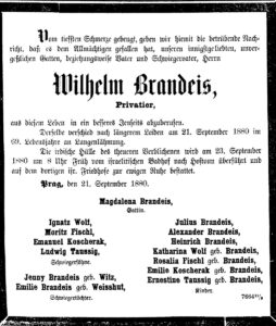 (Pozn.: zde použito jméno Brandeis, tvar používaný rodinou. Později jiné zdroje uvádějí Brandejs.)