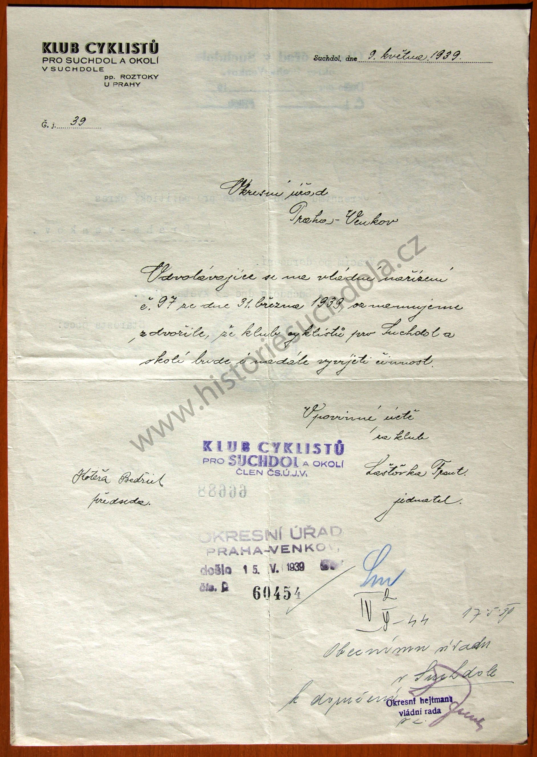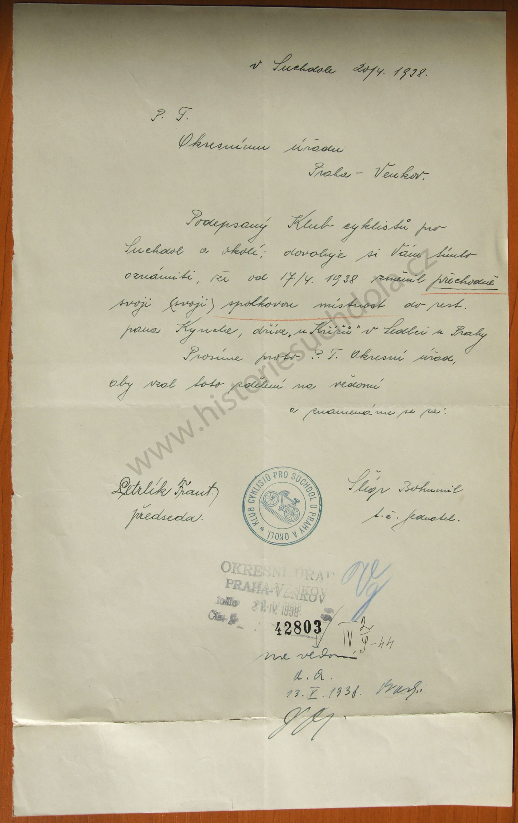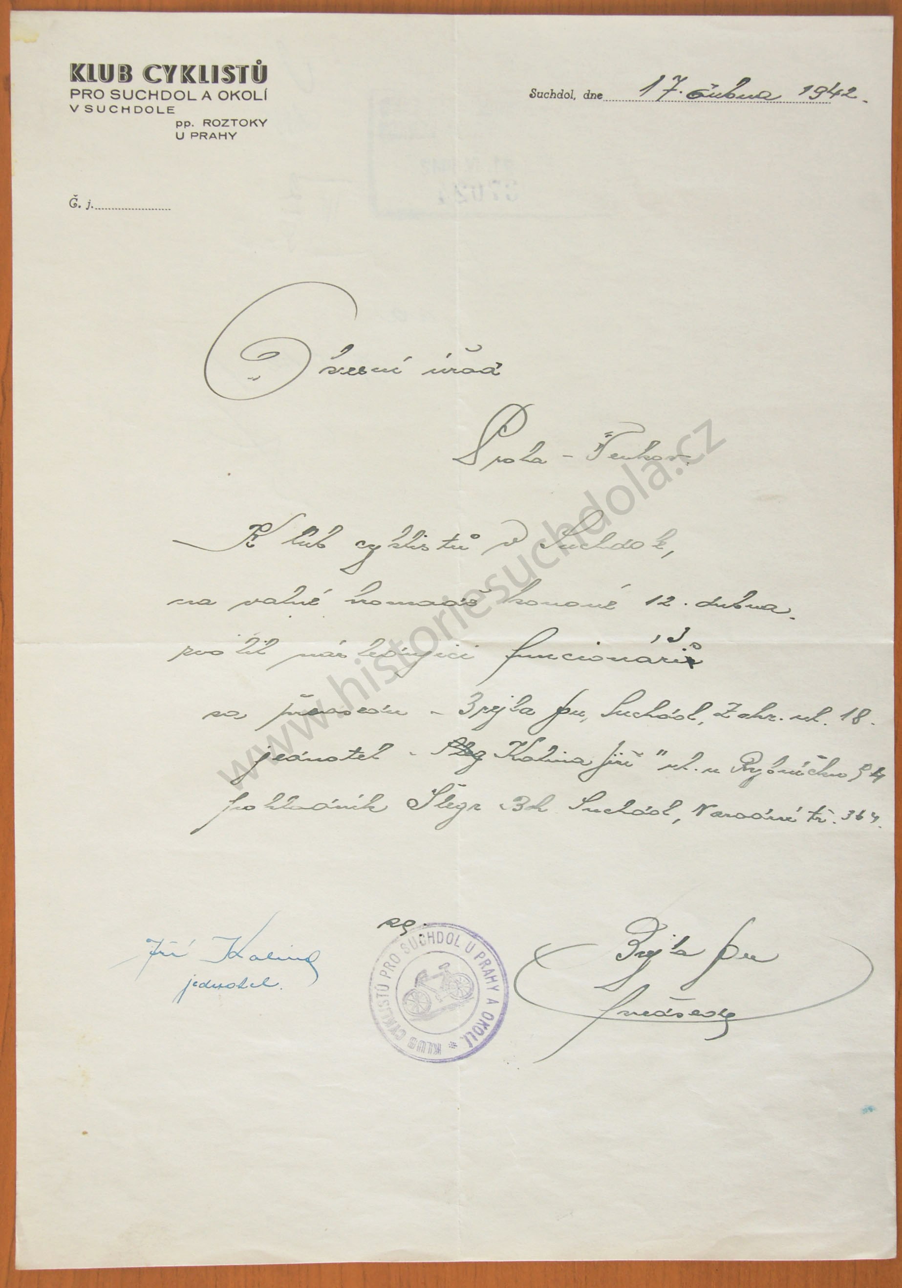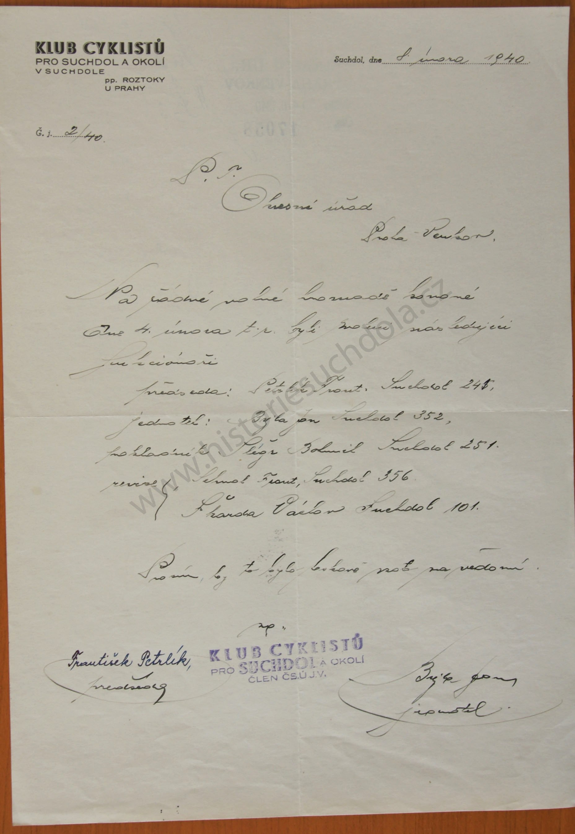 Zpráva pro časopis Cyklista, 7.6.1941 (Poskytl Fr. Černý).