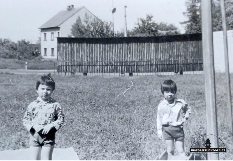Snímek z konce 70. let 20. století u stanice busu Zemědělská unvierzita směr Dejvice a osamělý dům na Brandejsově náměstí č. 2.