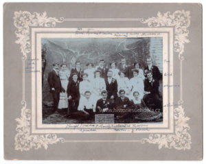 Nanynka (Anna) a Toník (Antonín) Kloudovi jsou na foto dvojice sedící úplně vlevo.