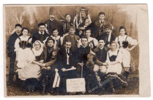 Fotografie dramatického odboru Dělnické tělovýchovné jednoty (DTJ) z roku 1912.