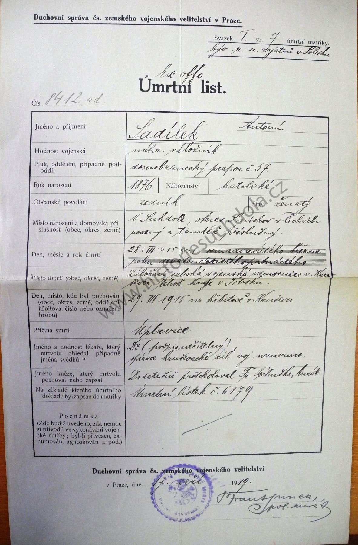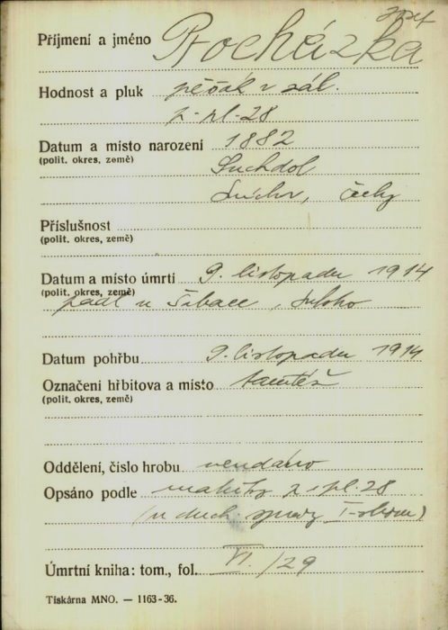 Místo pohřbení:   Piaski, okr. Jaroslav, Halič, 30.5.1915