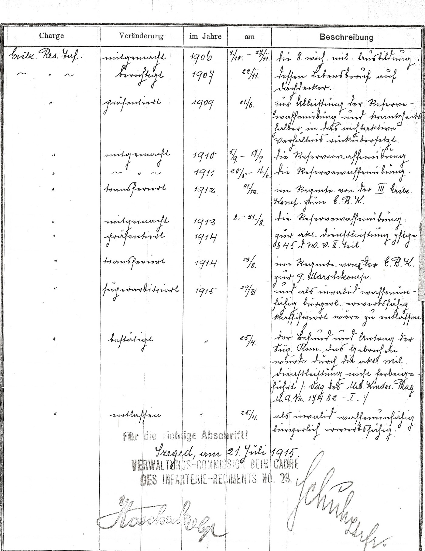 Příslušnost:   Rakousko-uherská armáda 1. střelecký pluk, 8. rota