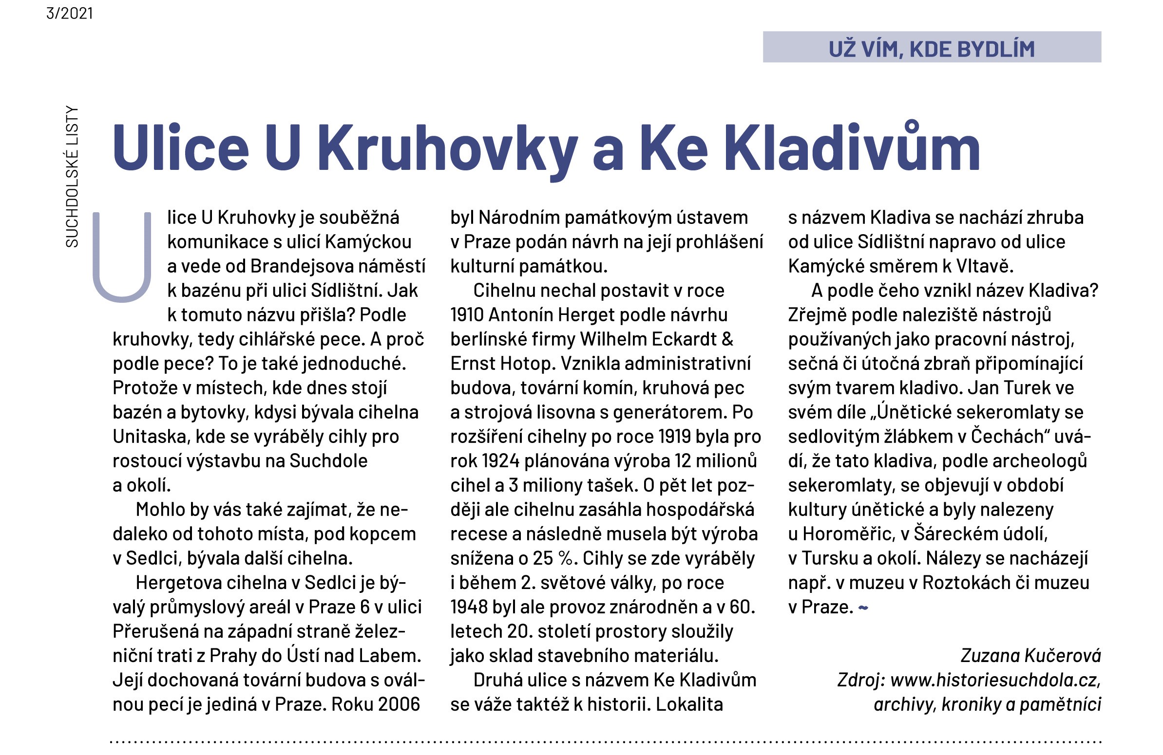| Část obce. | Název pro jižní část Výhledů. Pochází snad od nálezů kamenných „kladiv“ z pravěku. Správně „sekeromlatů“. Už vím, kde bydlím |