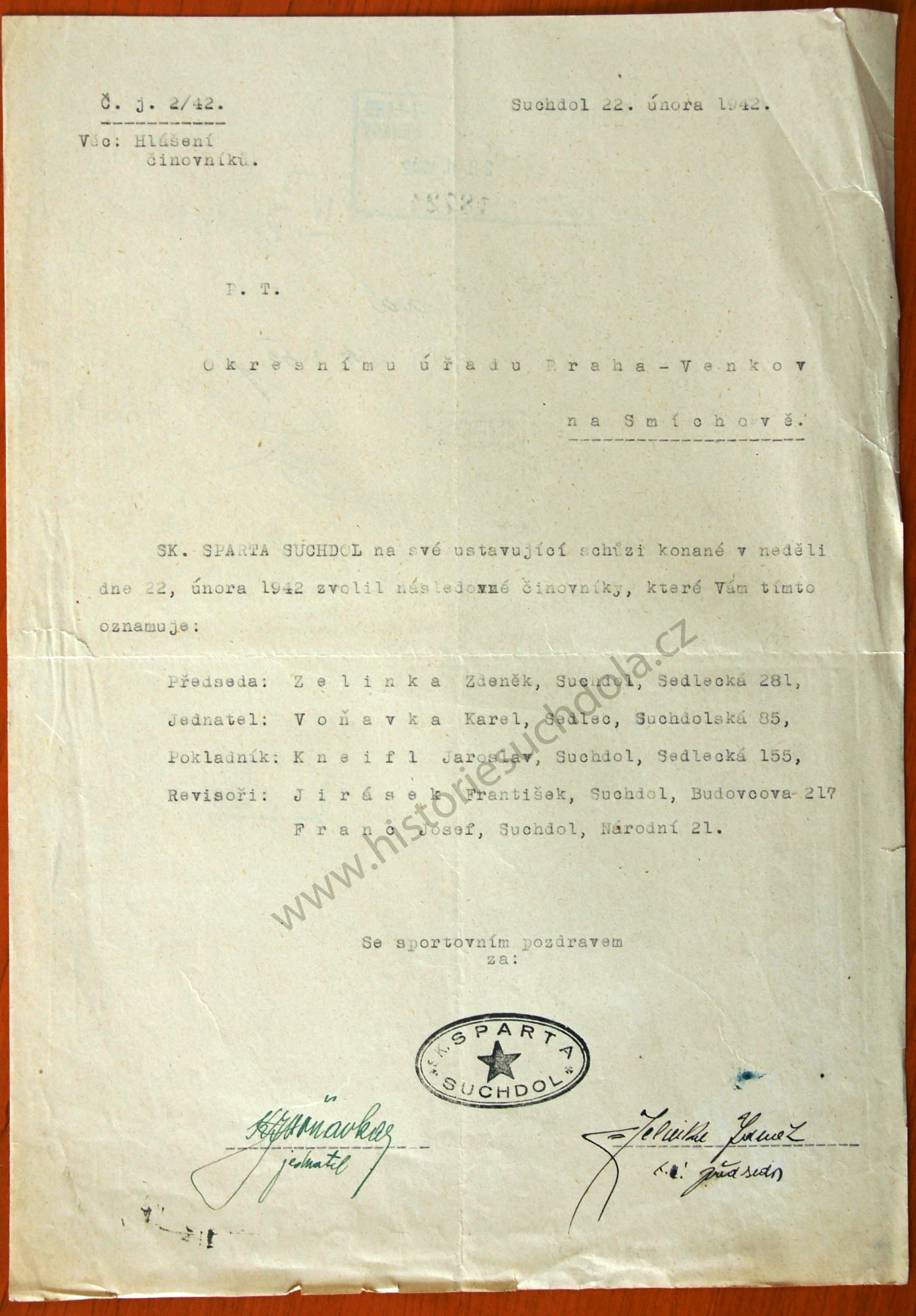 SK Sparta funkcionáři 22.2.1942 (SOkA Praha západ, OÚ Praha venkov).