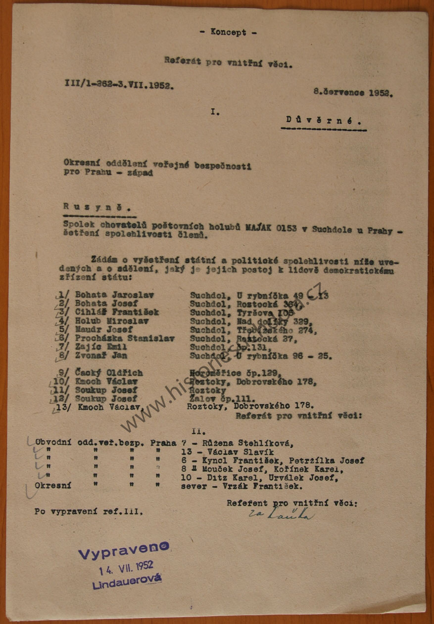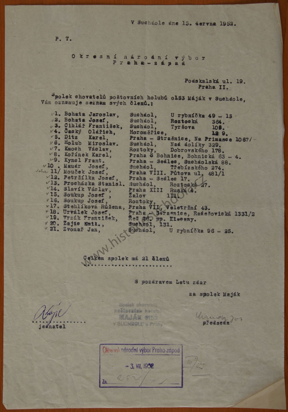 Seznam členů 1952 13.6.1952 (SOkA Praha-západ, OÚ Praha venkov).