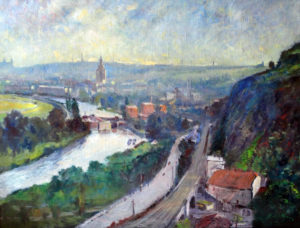 Samozřejmě, že se jedná o pohled od Kozích hřbetů, možná dokonce z Holého vrchu, na Trojanův mlýn,