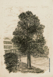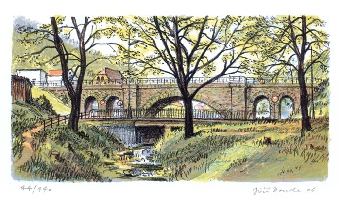 Autorka zobrazila bývalou viniční usedlost Tříkrálka u Sedleckého přívozu na severním okraji Prahy.