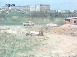 Bílý objekt uprostřed nevím, asi tam byl nějaký takový dům.
